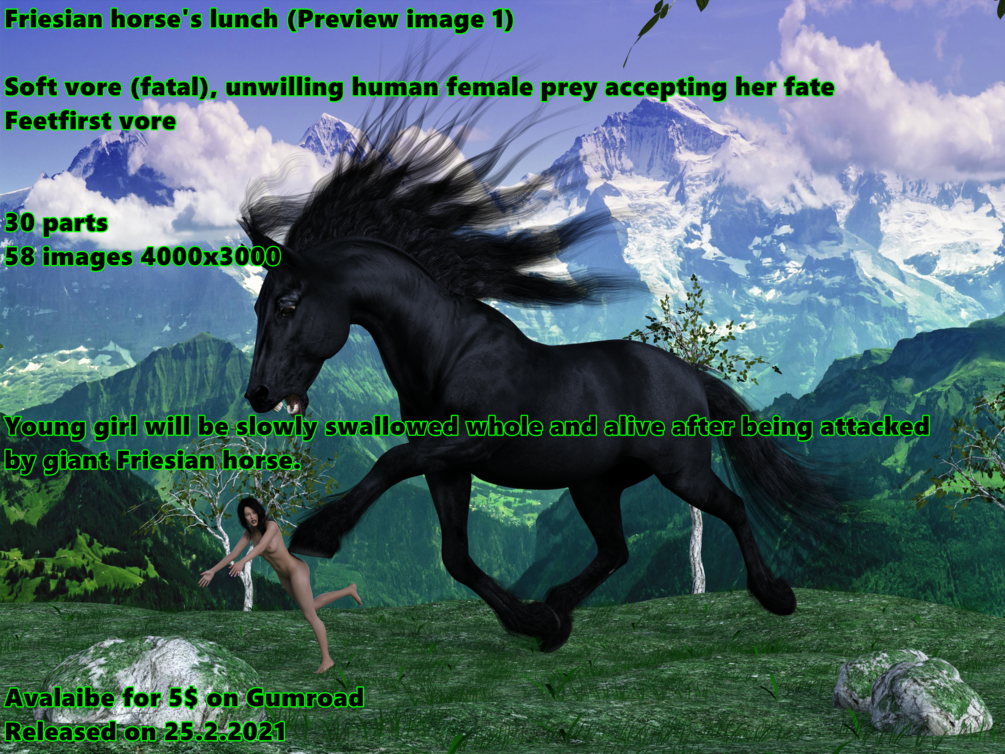 Friesian horse's lunch$5+$5+https://schema.org/InStockusdWerewolfCZWerewolfCZHorse vore commission released on 25.2.2021.This product is not currently for sale.Name a fair price:$Size1.05 GBAdd to wishlist New wishlistShareShare on XShare on Facebook Copy linkCopy product URL