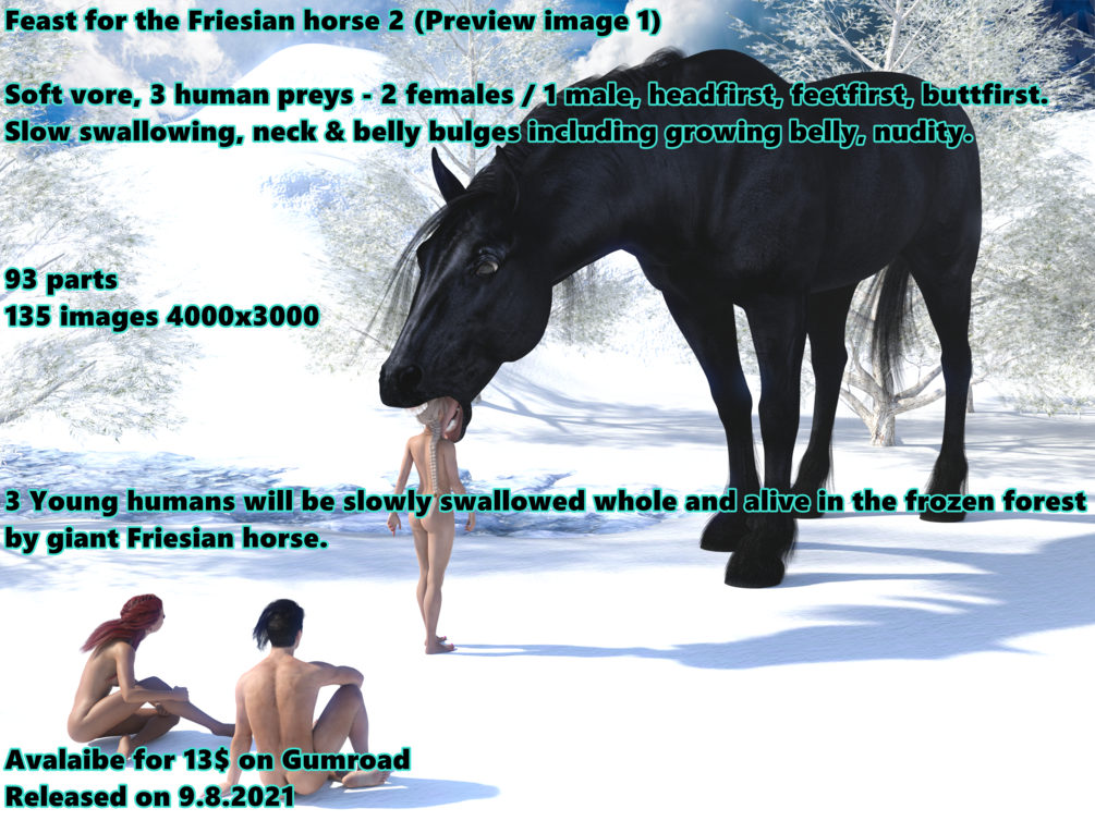 Feast for the Friesian horse 2$13+$13+https://schema.org/InStockusdWerewolfCZWerewolfCZHorse vore commission released on 9.8.2021.This product is not currently for sale.Name a fair price:$Size1.88 GBAdd to wishlist New wishlistShareShare on XShare on Facebook Copy linkCopy product URL