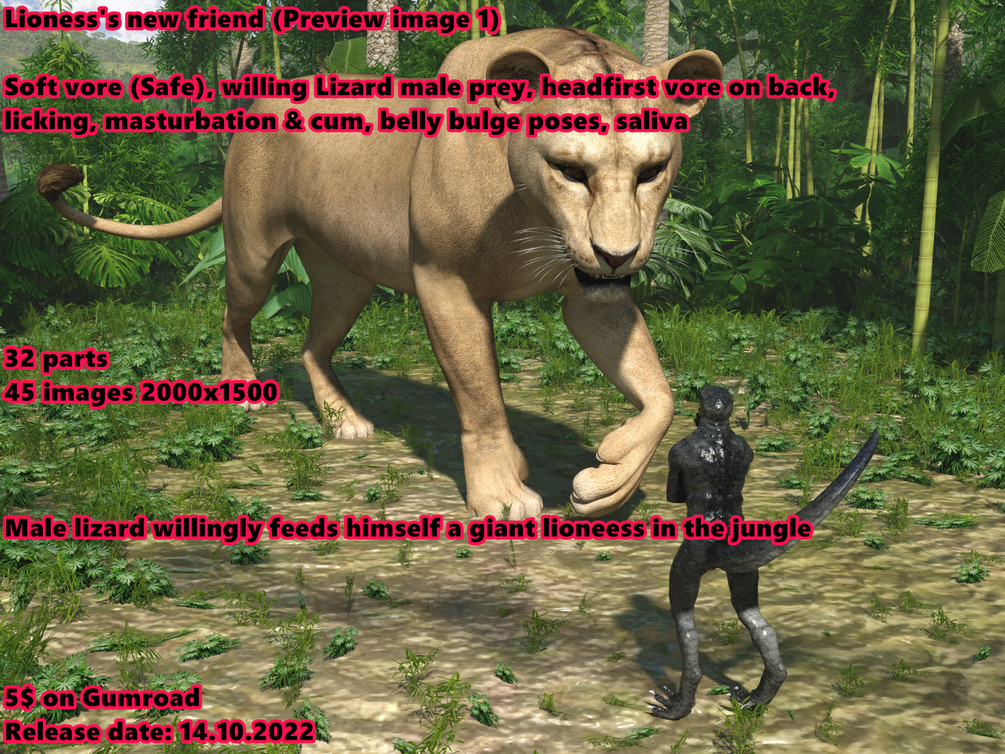 Lioness's new friend$6+$6+https://schema.org/InStockusdWerewolfCZWerewolfCZLioness vore commission released on 14.10.2022This product is not currently for sale.Name a fair price:$Size874 MBAdd to wishlist New wishlistShareShare on XShare on Facebook Copy linkCopy product URL