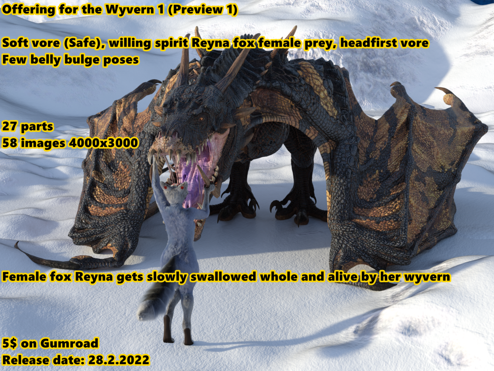 Offering for the Wyvern 1$5+$5+https://schema.org/InStockusdWerewolfCZWerewolfCZWyvern vore commission released on 28.2.2022This product is not currently for sale.Name a fair price:$Size944 MBAdd to wishlist New wishlistShareShare on XShare on Facebook Copy linkCopy product URL