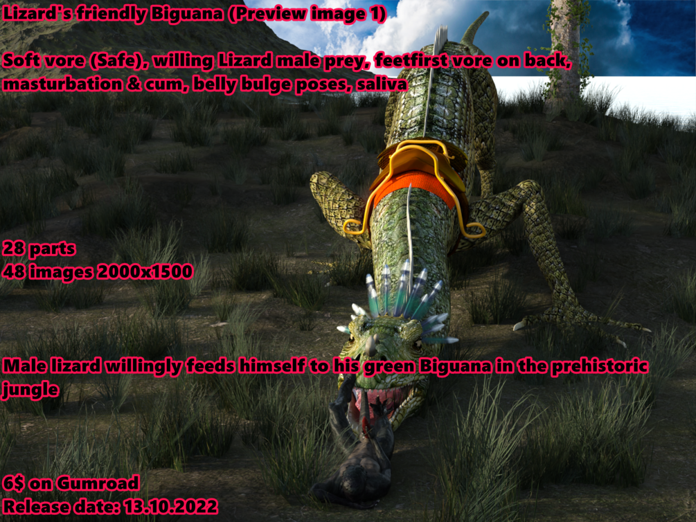 Lizard's friendly Biguana$6+$6+https://schema.org/InStockusdWerewolfCZWerewolfCZBiguana vore commission released on 13.10.2022This product is not currently for sale.Name a fair price:$Size239 MBAdd to wishlist New wishlistShareShare on XShare on Facebook Copy linkCopy product URL