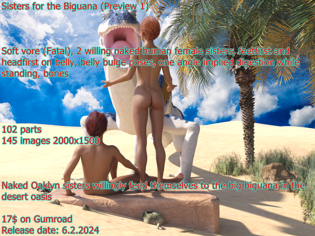 Sisters for the Biguana$17+$17+https://schema.org/InStockusdWerewolfCZWerewolfCZBiguana vore commission released on 6.2.2024This product is not currently for sale.Name a fair price:$Size578 MBAdd to wishlist New wishlistShare on XShare on Facebook Copy linkCopy product URL