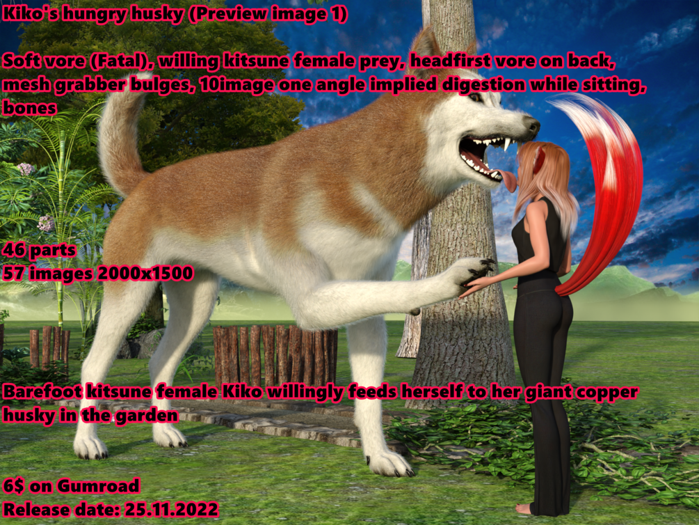 Kiko's hungry husky$6+$6+https://schema.org/InStockusdWerewolfCZWerewolfCZHusky vore commission released on 25.11.2022This product is not currently for sale.Name a fair price:$Size305 MBAdd to wishlist New wishlistShareShare on XShare on Facebook Copy linkCopy product URL