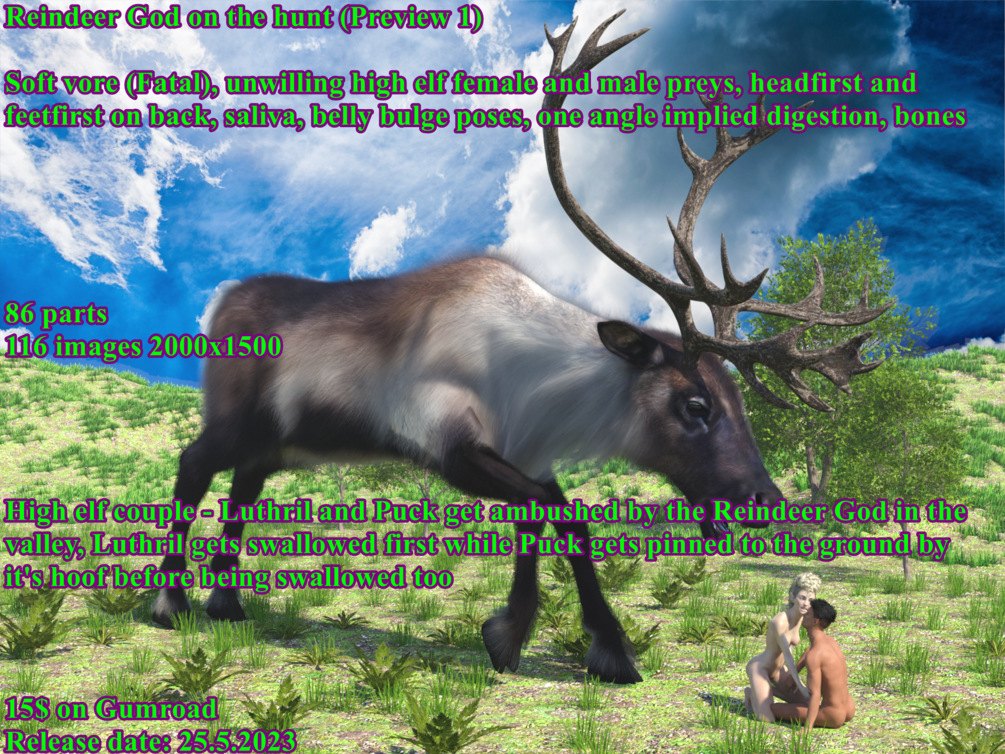 Reindeer God on the hunt$15+$15+https://schema.org/InStockusdWerewolfCZWerewolfCZReindeer vore commission released on 25.5.2023This product is not currently for sale.Name a fair price:$Size622 MBAdd to wishlist New wishlistShareShare on XShare on Facebook Copy linkCopy product URL