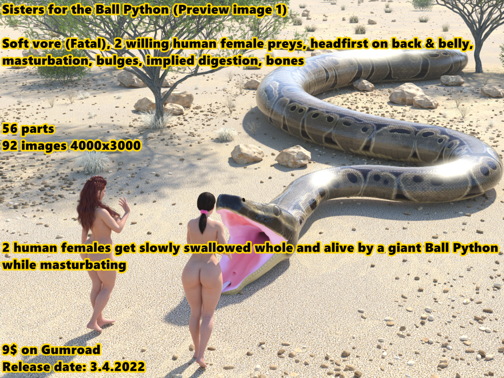 Sisters for the Ball Python$9+$9+https://schema.org/InStockusdWerewolfCZWerewolfCZBall Python vore commission released on 3.4.2022This product is not currently for sale.Name a fair price:$Size1.73 GBAdd to wishlist New wishlistShareShare on XShare on Facebook Copy linkCopy product URL