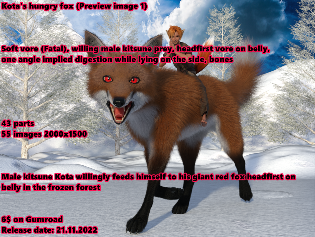 Kota's hungry fox$6+$6+https://schema.org/InStockusdWerewolfCZWerewolfCZFox vore commission released on 21.11.2022This product is not currently for sale.Name a fair price:$Size257 MBAdd to wishlist New wishlistShareShare on XShare on Facebook Copy linkCopy product URL