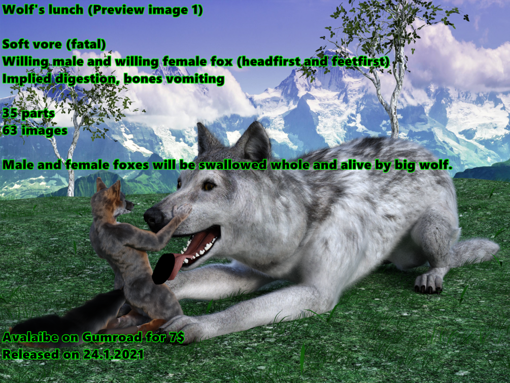 Wolf's lunch$7+$7+https://schema.org/InStockusdWerewolfCZWerewolfCZWolf vore series with 2 fox preys released on 24.1.2021.This product is not currently for sale.Name a fair price:$Size1.32 GBAdd to wishlist New wishlistShareShare on XShare on Facebook Copy linkCopy product URL