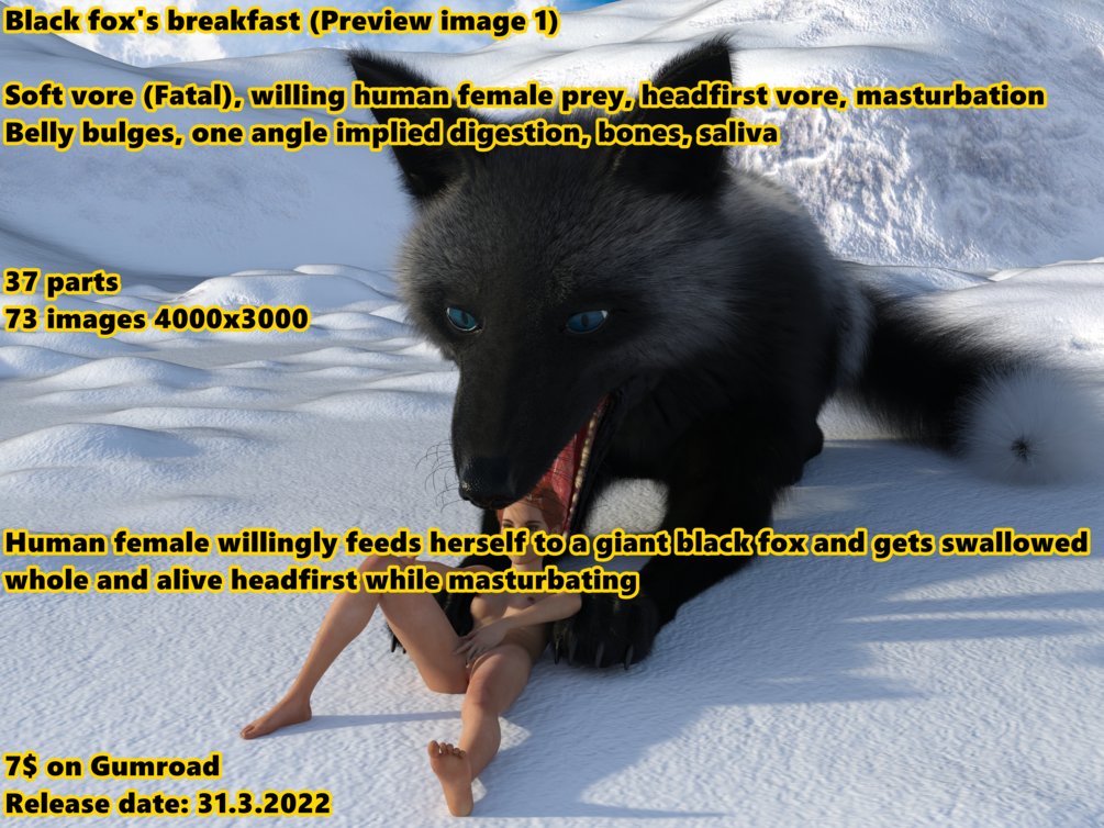 Black fox's breakfast$7+$7+https://schema.org/InStockusdWerewolfCZWerewolfCZFox vore commission released on 31.3.2022This product is not currently for sale.Name a fair price:$Size1.08 GBAdd to wishlist New wishlistShareShare on XShare on Facebook Copy linkCopy product URL