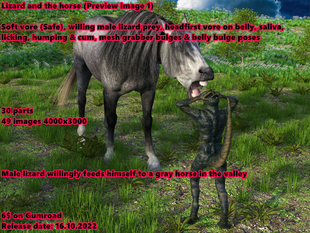 Lizard and the horse$6+$6+https://schema.org/InStockusdWerewolfCZWerewolfCZHorse vore commission released on 16.10.2022This product is not currently for sale.Name a fair price:$Size984 MBAdd to wishlist New wishlistShareShare on XShare on Facebook Copy linkCopy product URL
