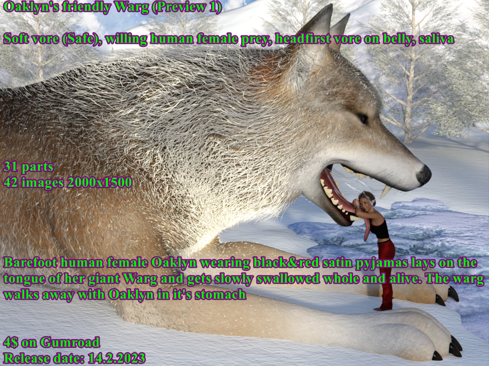 Oaklyn's friendly Warg$4+$4+https://schema.org/InStockusdWerewolfCZWerewolfCZWarg vore commission released on 14.2.2023This product is not currently for sale.Name a fair price:$Size202 MBAdd to wishlist New wishlistShareShare on XShare on Facebook Copy linkCopy product URL