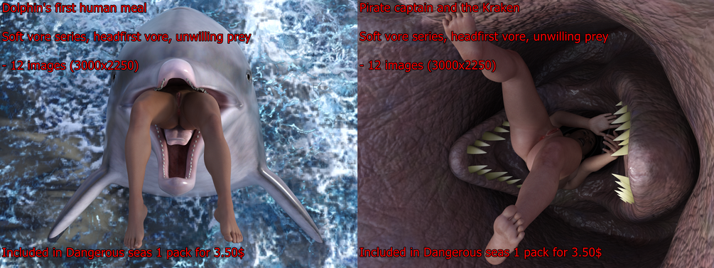 2 new vore series - Kraken and dolphin pred, each 12 images, unwilling preys, nudity included, 24 images in total. Now discounted to 3$