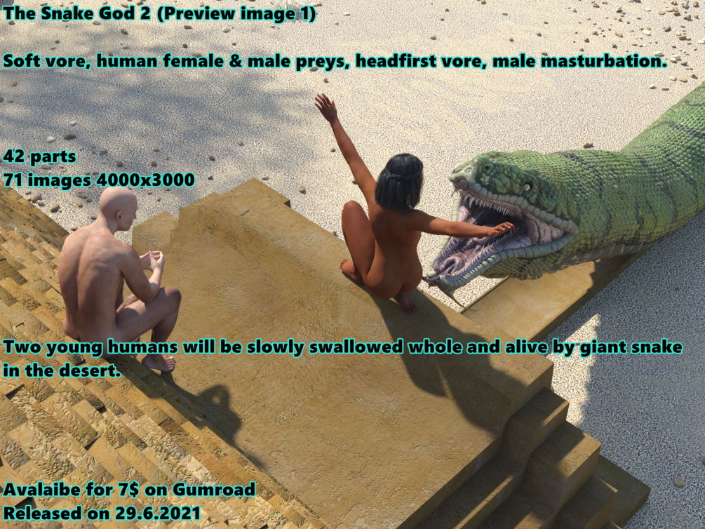 The Snake God 2$7+$7+https://schema.org/InStockusdWerewolfCZWerewolfCZSnake vore commission released on 29.6.2021.This product is not currently for sale.Name a fair price:$Size1.35 GBAdd to wishlist New wishlistShareShare on XShare on Facebook Copy linkCopy product URL