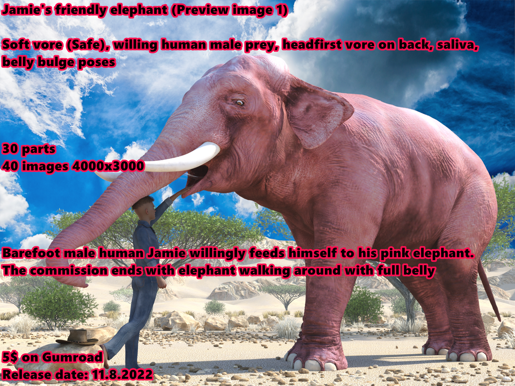 Jamie's friendly elephant$5+$5+https://schema.org/InStockusdWerewolfCZWerewolfCZPink elephant vore commission released on 11.8.2022This product is not currently for sale.Name a fair price:$Size698 MBAdd to wishlist New wishlistShare on XShare on Facebook Copy linkCopy product URL