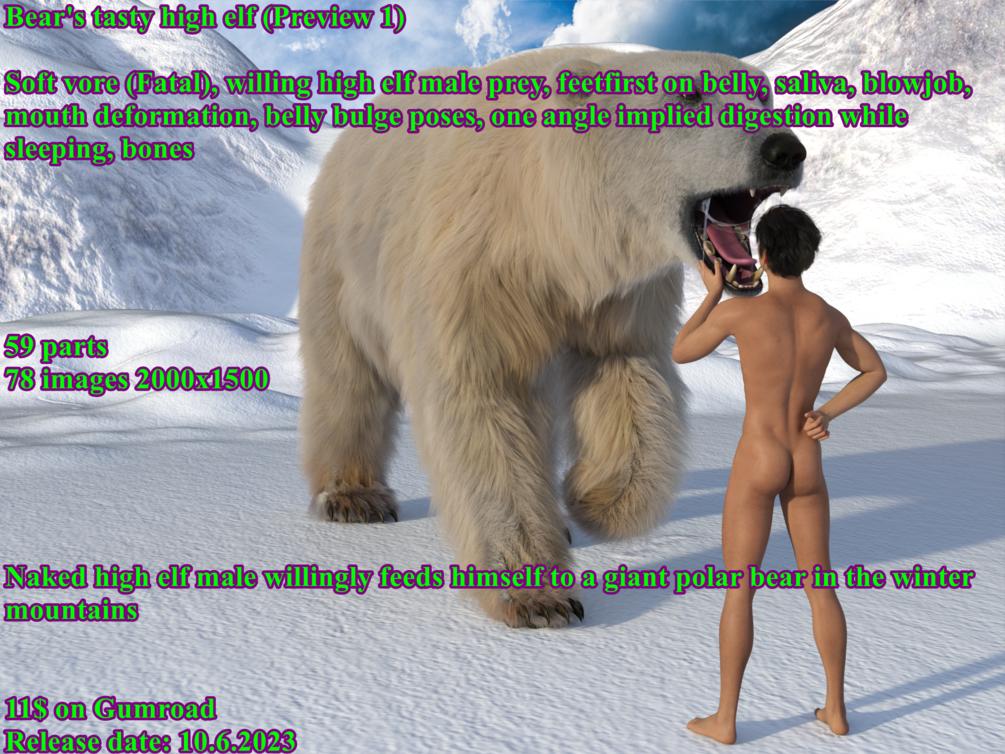 Polar bear's tasty high elf$11+$11+https://schema.org/InStockusdWerewolfCZWerewolfCZPolar bear vore commission released on 10.6.2023This product is not currently for sale.Name a fair price:$Size315 MBAdd to wishlist New wishlistShareShare on XShare on Facebook Copy linkCopy product URL