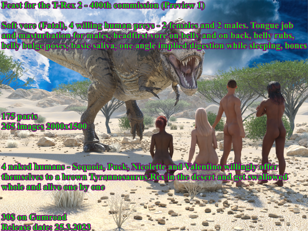 Feast for the T-Rex 2$30+$30+https://schema.org/InStockusdWerewolfCZWerewolfCZTyrannosaurus Rex 3 commission released on 25.3.2023This product is not currently for sale.Name a fair price:$Size1.51 GBAdd to wishlist New wishlistShareShare on XShare on Facebook Copy linkCopy product URL